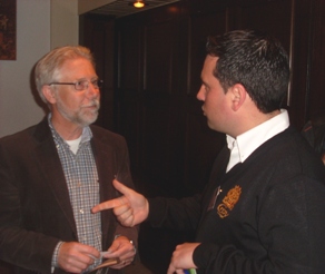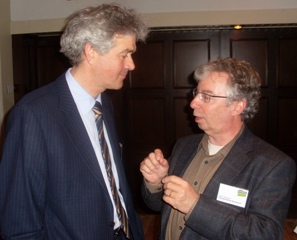 Festival Boulevarddirecteur Geert Overdam in gesprek met Gerard van Oosten van de ZLTO. Van Oosten nam voor Real food, vertaald in 'beter eten' in Brabant centraal te gaan stellen . 'Beter eten' geldt voor jezelf, voor de omgevng en dus voor de producenten.' foto's © paul kriele, 7 mei 2010. |