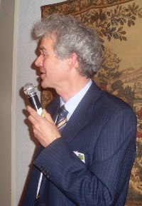 | Eric Maas van de kamelenfokkerij in Cromvoirt, die overigens binnenkort naar Berlicum verhuist, introduceerde als primeur de bonbon met room van kamelenmelk. Maas: 'We doen veel met zuivel.. en die kamelen spraken ons wel aan. ' | Gastspreker Gerard van Oosten directeur van de ZLTO en hoofdsponsor van het themajaar 'Hoofdstad van de smaak'. foto's © paul kriele, 7 mei 2010. |