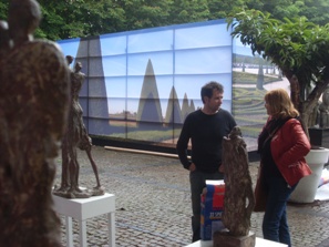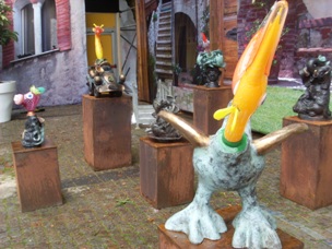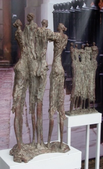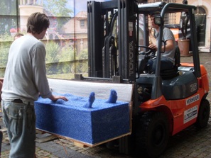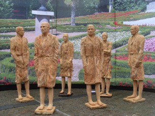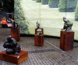 | Onder: Een beeldengroep uit de Galerie van Van Loon & SimonsVught. Rechts: Mannen van Bea van Dorpe [Blg]. Rechts onder: de beelden en andere objecten worden met alle zorg vervoerd en uitgepakt. foto's © paul kriele,9 juni 2010. |