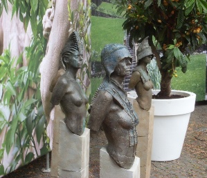 | Hierboven: Beelden van Galerie van Loon & Simons uit Vught | Links en rechts: Bronzen naakten van Irénée Duriez. |