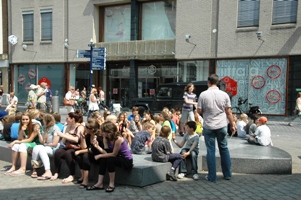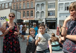 | Even pauze met een ijsje voor de leerlingen van de Beekmanschool na een bezoek aan de Beelden Parade op de Parade. foto's © paul kriele, 25 juni 2010. |