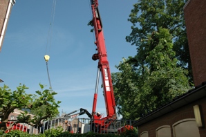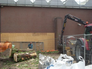 En de afvoer van de gevelde boom naar de Boomrooierij in Udenhout en de resten opruimen en de boel schoonmaken.