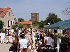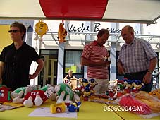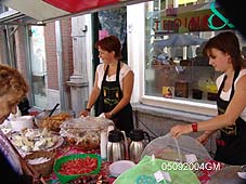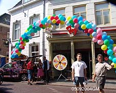 -Links boven: Een Rad van Fortuin was opgezet door de speelautomatenzaak. -Hapjes bij Tijdink & Tijdink en hapjes van 'de Chinees'. foto's © gerard monté, 5 september 2003. - |