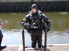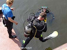 | Demonstratie door Herman Lieven Watersport. De duikers gaan te water. foto's © gerard monté, 5 september 2003. |