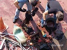 Er bestond veel belangstelling voor dit onderdeel van de 'Hinthamereinde straatfeesten'. Op het laatste werd -naast allerlei andere rommel- nog een moker opgedoken. |