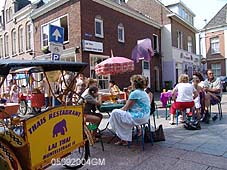 | -Boven: Eten bij Thais restaurant Lai Thai op de hoek Hinthamereinde/Muntelstraat. Gezelligheid en kunst gingen goed samen op het straatfeest. -En bij de Chinees. -Rechts onder en bij Tijndink & Tijdink. Onder: In de tijdelijk leegstaande nieuwbouw was een expositieruimte ingericht [l] foto's © geard monté, 5 september 2003. |