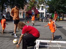 | Sport en spel en hier voetballers in grote en kleine maten. -foto's © gerard monté, 5 september 2003. |
