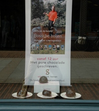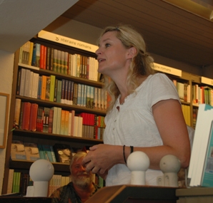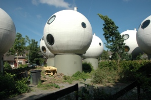 | De Bossche bollen werden nog eens naar voren gehaald bij de boekpresentatie van 'Bossche bollen', waarin ook architect Dries Kreijkamp wordt geïnterviewd. | Natascha van der Linden, docent Vrouwelijke Kunstgeschiedenis en ontwerpster, staat op de boekpresentatie bij enkele mini-bolwoningen en bijbehorende bergingen [rechtsonder], die zij in keramiek heeft uitgevoerd. foto's © paul kriele, 6 juni 2010. |
