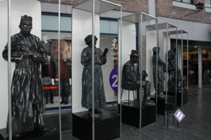 | Vitrines voor C&A met een pastoor, pastoorsmeid en het kerkbestuur.... foto's © paul kriele, 10 oktober 2009. |