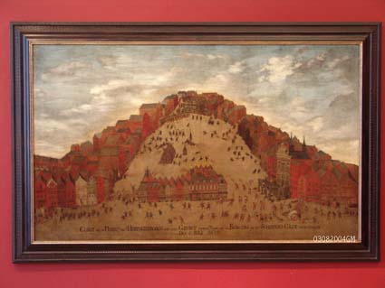 Dit schilderij 'het Schermersoproer' van 3 juli 1579, hangt in het Noordbrabants Museum. Vergroot hangt het -vanaf zondag 31 oktober 2004, ook op de Markt ivm de Week van de Geschiedenis. foto © gerard monté, 3 augustus 2004. |