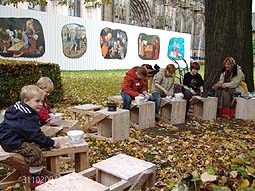 | Kindervermaak rond grote kathedraal met een bouwkundige opdracht in de Week van de Geschiedenis. | foto's © gerard monté, 31 oktober 2004. |