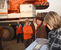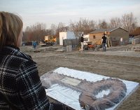 | De nieuwe huizen staan netjes in het gelid en worden geïnspecteerd door wethouder Elly de Jonge [foto rechts, vlak voor de vrachtwagen net zichtbaar..] |