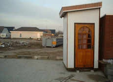 | Een oude toegang en rechts ervan is nog net een nieuw schuurtje zichtbaar. foto's © paul kriele, 2 december 2004. |