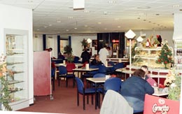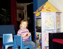 | Hierboven links de kinderhoek en rechts het restaurant. |
