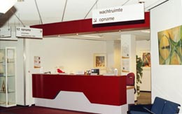 | De nieuwe afdelingen in de hal van het Carolus: de apotheek [l] en de opname [r]. | foto's © paul kriele, 14 december 2005. |