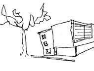 | Situatieschetsen van de aanbouw [rechterzijde] van het kantoorpand Zuid-Willemsvaart 142-144 door architectenbureau Marius van de Wildenberg. Het linker deel is het bestaande kantoorpand met een lage achterbouw. |