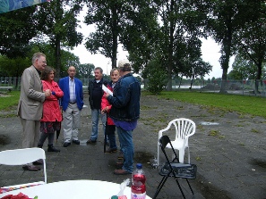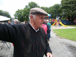 | Oud speeltuinbaas Van Rijn. | Overleg met PvdA-delegatie o.a. links oud-wethouder Geert Snijders en raadslid Hermie van Ommeren. |