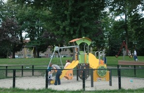 | -Boven: Verspreid in het Prins Hendrikpark zijn al kleinere speeltuintjes met moderne speeltoestellen aangelegd. -Rechts: De speeltuin aan de Westenburgerweg. foto's © paul kriele, 24 augustus 2010. |