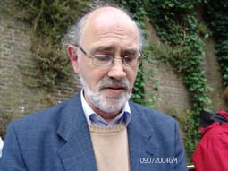 | Directeur Noordbrabants Museum Jan van Laarhoven verdiept in zijn teksten, merendeels laat-middeleeuwse gedichten uit de tijd waarin Jeroen Bosch leefde. foto's © gerard monté, 9 juli 2004. |