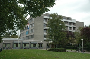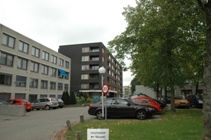 | Het uit 1970 daterende verpleeghuis Oosterhof, waarvan de begane grond geheel is gerenoveerd en er tegelijk kantoortuinen zijn ingericht. | De nieuwe woonflat, RivièrAa, aan de linker ofwel de Westzijde van Oosterhof, die dateert van eind 2004. foto's © paul kriele, 20 september 2010. |