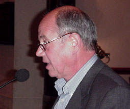 | Cees Slegers tijdens de toespraak als nieuwe voozitter van de Heemkundekring De Boschboom foto © gerard monté, 8 oktober 2002. |