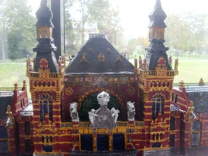 De van karton gemaakte, gedetailleerd opgebouwde maquette is ook in de oude kleuren geschilderd en compleet met de klok die de Greenwichtijd aanwees. Als pendanten staan de twee leeuwen boven de hoofdingang. Ze bleven gespaard bij de sloop van het station van Sybold Ravenstein en kregen een plek aan de achterzijde.