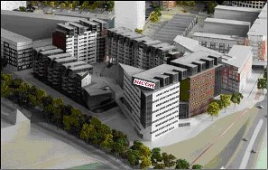 | Project Belvedère: Hoek Magistratenlaan/Vlijmenseweg: De nieuwbouw van Ricoh in het Paleiskwartier. | Rechts vooraan loopt de Vlijmenseweg, links de Magistratenlaan waar ook de laatste invulling van het Paleiskwartier wordt gerealiseerd. |