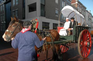 | Een groentenkar... | en een huifkar die een bisschop vervoerde. |