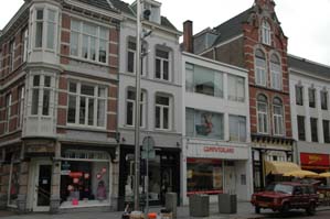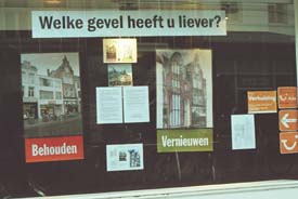 | -Boven: Ontwerp voor het huidige, in strakke bouwstijl uitgevoerde, pand op Vughterstraata 6. Rechts boven: het huidige, witte [derde van links] pand Vughterstraat 6. -Rechts: De enqûete van 2006 die de mening peilde van de Bosschenaren omtrent de Gaudi-achtige invulling voor de nieuwe gevel van Vughterstraat 6. foto's © paul kriele, 30 maart 2006 [r.] en 8 november 2010. | ![]() |