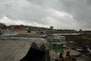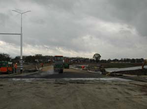 | De Randweg die hier naar De Heun/Motel Valk loopt en na de overbrugging met het kanaal, paralell het spoor blijft volgen tot aan de Isabellalaan/Bosscheweg, waar de weg onder het spoor doorgaat. | Vooraan de nieuwe kruising Randweg/ Magistratenlaan. In de verte de treinen naar Tilburg /Eindhoven. foto's © paul kriele, 8 november 2010. |