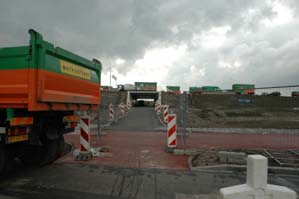 | Rechts dezelfde situatie als boven van het viaduct over de Vlijmenseweg als afslag van de Randweg naar de Magistratenlaan. foto's © paul kriel, 8 november 2010. |
