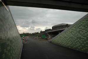 | Het viaduct onder de Randweg voor fietsers richting Gement. | Hetzelfde viaduct voor fietsers gezien richting Paleiskwartier. foto's © paul kriele, 8 november 2010. |