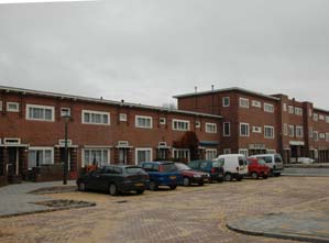 Links: de Peter Vreedestraat [2 t/m 28] en onder het Gheert van Calcarplein 1 t/m 38. foto's © paul kriele, 8 november 2010. |