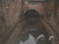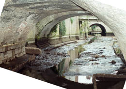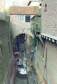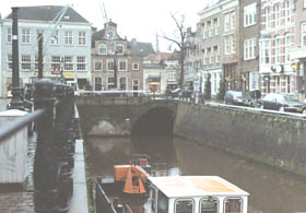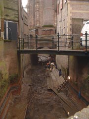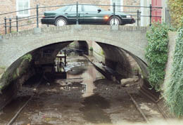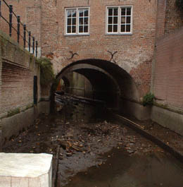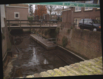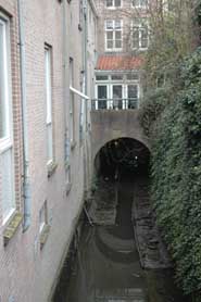 | Het traject langszij de Molenstraat, gezien vanaf Zoete Lieve Gerritje, is geheel drooggelegd. | Ter hoogte van De Klomp [r] en achter de zusters Mariënburg [l] is dit traject zichtbaar. foto's © paul kriele, 1 december 2004 |