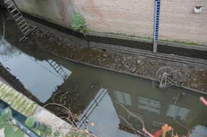 te voeren. Door de drooglegging kan er ook een schoonmaakbeurt worden uitgevoerd want er komt heel wat aan de oppervlakte voornamelijk fietsen, aldus een van de werklieden.