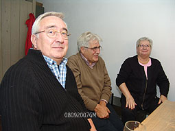 | Voorzitter Jacques Quaars [m] en mede-organisator Go Janssen [r.] naast het omstreden podium [r.] dat al of niet gaat verdwijnen. foto's © gerard monté, 8 september 2007. |