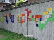 | De muur geeft de straat tussen de Hofstad en de Kleine Hofstad weer een kleurrijk aanzien. |