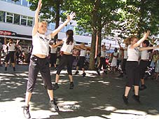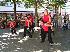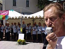 | Hierboven het Schipperskoor, een initiatief van leden van de Stichting Binnendieze, tijdens het optreden op het Kerkplein. | foto's © gerard monté, 18 juni 2005. |