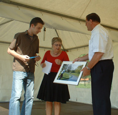 | Toespraak door wethouder Jetty Eugster en de bekendmaking van de winnaars van de fotowedstrijd rond de 'Dag van het Park'. . | Winnaar Eric Peeters en rechts voorzitter Jos Simons.. |