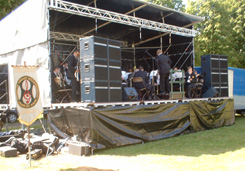 | Een schaduwplekje voor attributen dient ook als kennel voor de levende haven | Als een van de eersten speelde de Orthense Harmonie. |