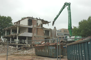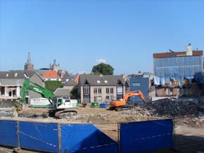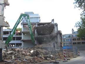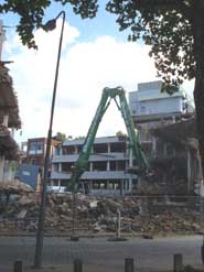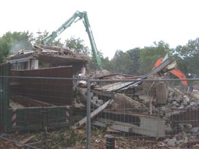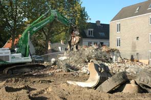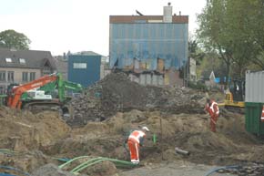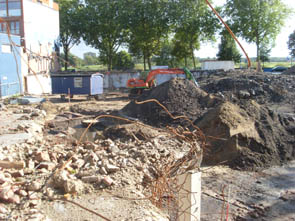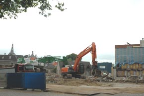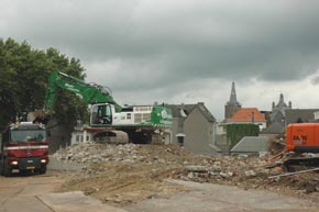| Opnamen op donderdag 11 september. foto 's © paul kriele, 11 september 2008. | De sloopmachienes komen steeds dieper en naderen het oude maaiveld. |