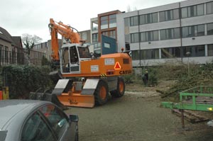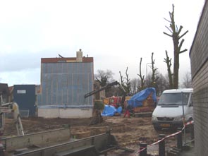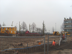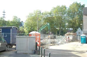 ![]() | -Links de kaalslag is bijna gereed voor de start van de nieuwbouw. -Boven: de bouwketen en intekenwagens van Heijmans staan al klaar om met het werk te beginnen. foto's © paul kriele, 21 en 28 november 2008. |