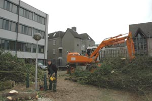 Recentelijk dienden omwonenden bezwaren in tegen de bomenkap langs het Drongelens kanaal en op de Heun voor de nieuwe Randweg. De gemeente had haast omdat de kap voor het broedseizoen moest gebeuren. En vandaag dinsdag 2 april 2008 zijn er een stel bomen rondom het voormalige Arrondissement aan de Beurdsestraat verdwenen. Op de [ook al verdwenen] Kemelsharenhoek met de Zuidwal komt een - door Heijmans te bouwen - appartementenblokhuizenblok.