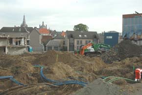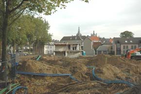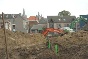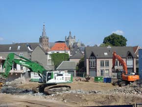 | De gebouwen zijn boven de grond nagenoeg verdwenen. Met regenwolken en de St.Jan op de achtergrond ontstaat er een nieuw - maar tijdelijk -stadsgezicht. | foto's © paul kriele, 3 september 2008. |