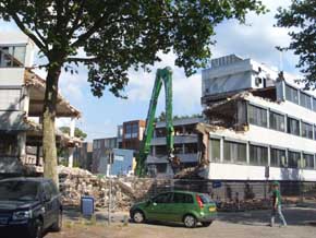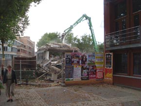 | Aan de zijde van de Beurdsestraat is al een deel van het gebouw verdwenen. | foto's © paul kriele, 14 juli 2008. |