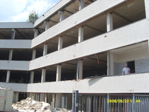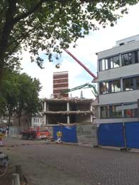 | Aan de zijde Beurdsespoort zijn al de bovenste etages gesloopt. | foto © paul kriele, 11juli 2008. |