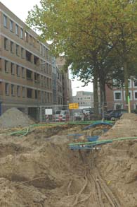 Hierboven: Op het terrein worden op allerlei strategische plekken kabels getrokken voor de toekomstige nieuwbouw.