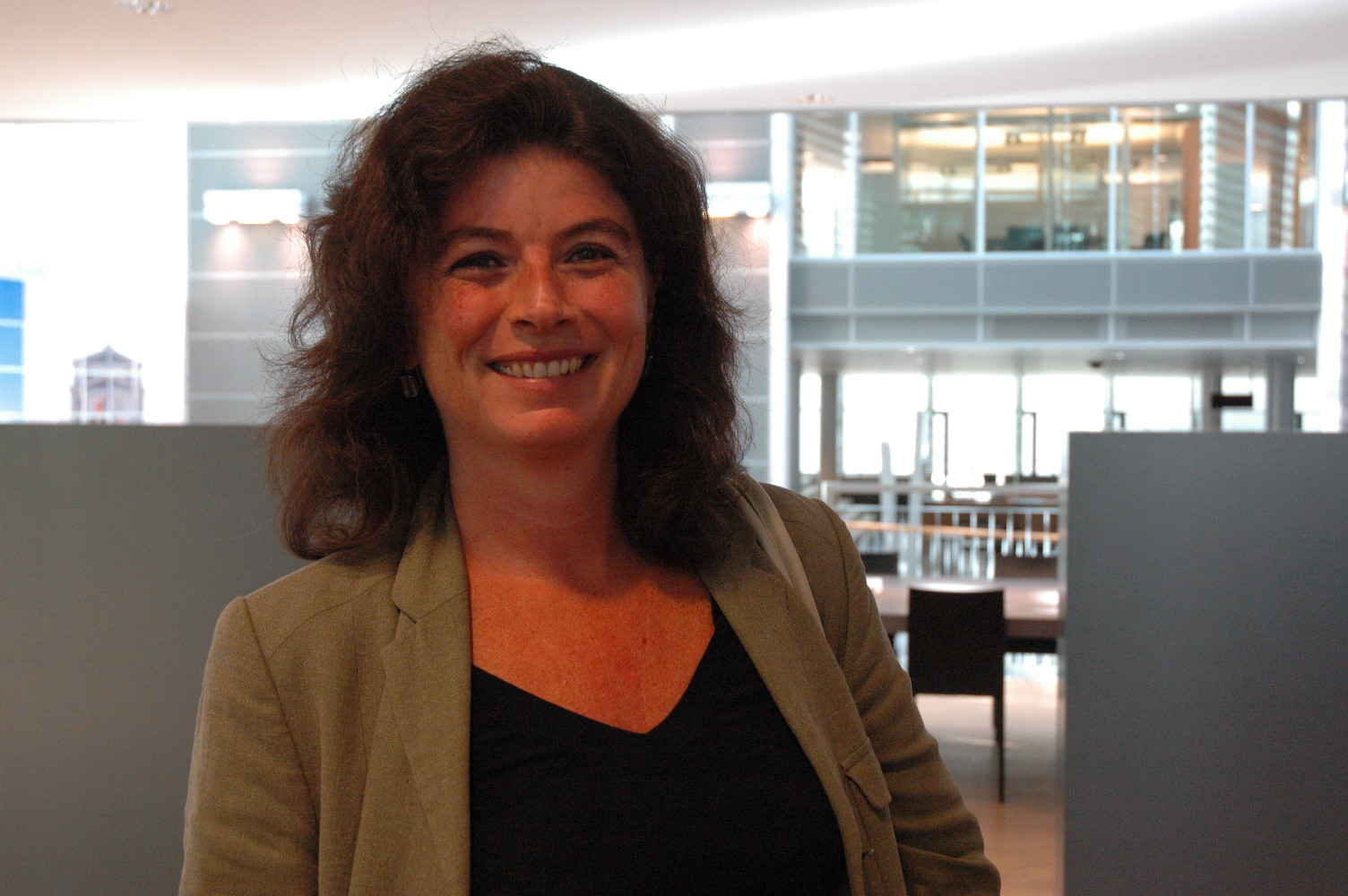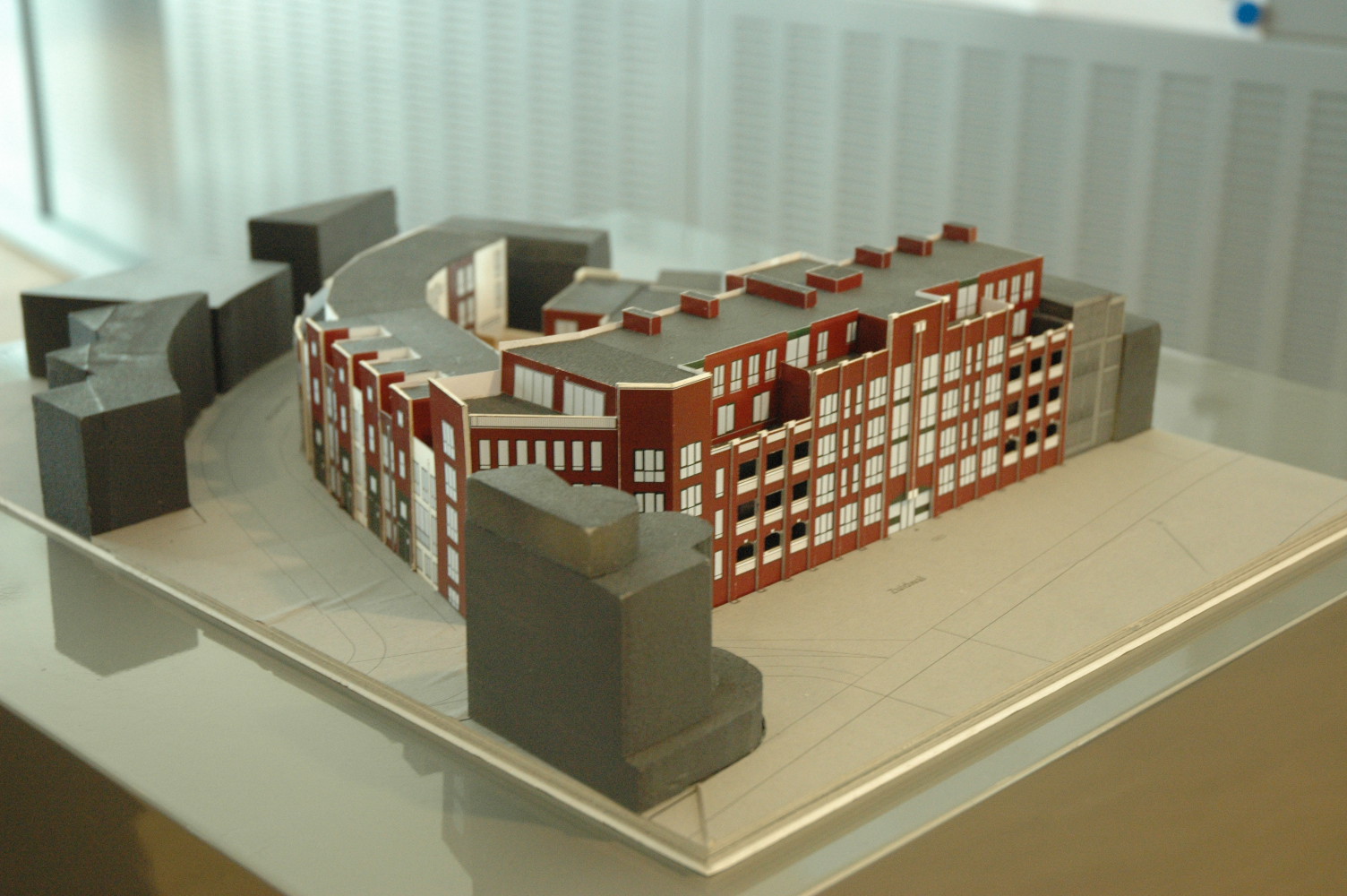 | Hierboven de architect Dana Ponec en hiernaast een eerste maquette van het complex. Met gevelrij aan de Zuidwal [boven] en het binnenplein [onder]. - foto's © paul kriele, 6 september 2007. | ![]() |