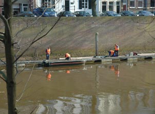 De vlonders van de aanlegsteigers aan de Buitenhaven worden vervangen door kunststofplanken. Ook de steigers langszij de Oliemolensingel en de Binnenhaven komen aan de beurt. foto © paul kriele, 9 februari 2011. |