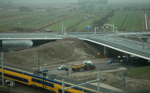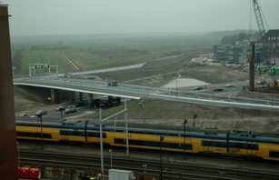 | Drie maal de nieuwe Randweg: -Rechtsboven: totaalbeeld op de Randweg [uiterst links] vanaf Essent met zicht op Koning Willem I-College. -Boven: Bovenin de foto de Randweg richting Vught met links het viaduct over het Drongelens kanaal. -Rechts: de afslag van de Randweg naar de Magistratenlaan, die naar het station loopt en later doorgetrokken wordt naar de Diezebrug en Zandzuigerstraat. foto's © paul kriele, 25 februari 2011. |